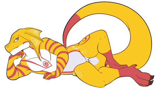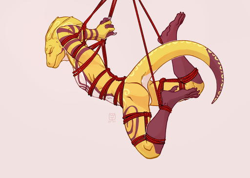 Spiral's naughty bits hide away most of the time. His balls are entirely internal and his shaft only appears when he pushes it out. It's very ridged when hard and tends to be well lubricated. Spiral is pretty exclusively a top and rather dominate when he's being horny and lewd. There are a few people he'll be less dominant with, but he only truly switches for his otter.