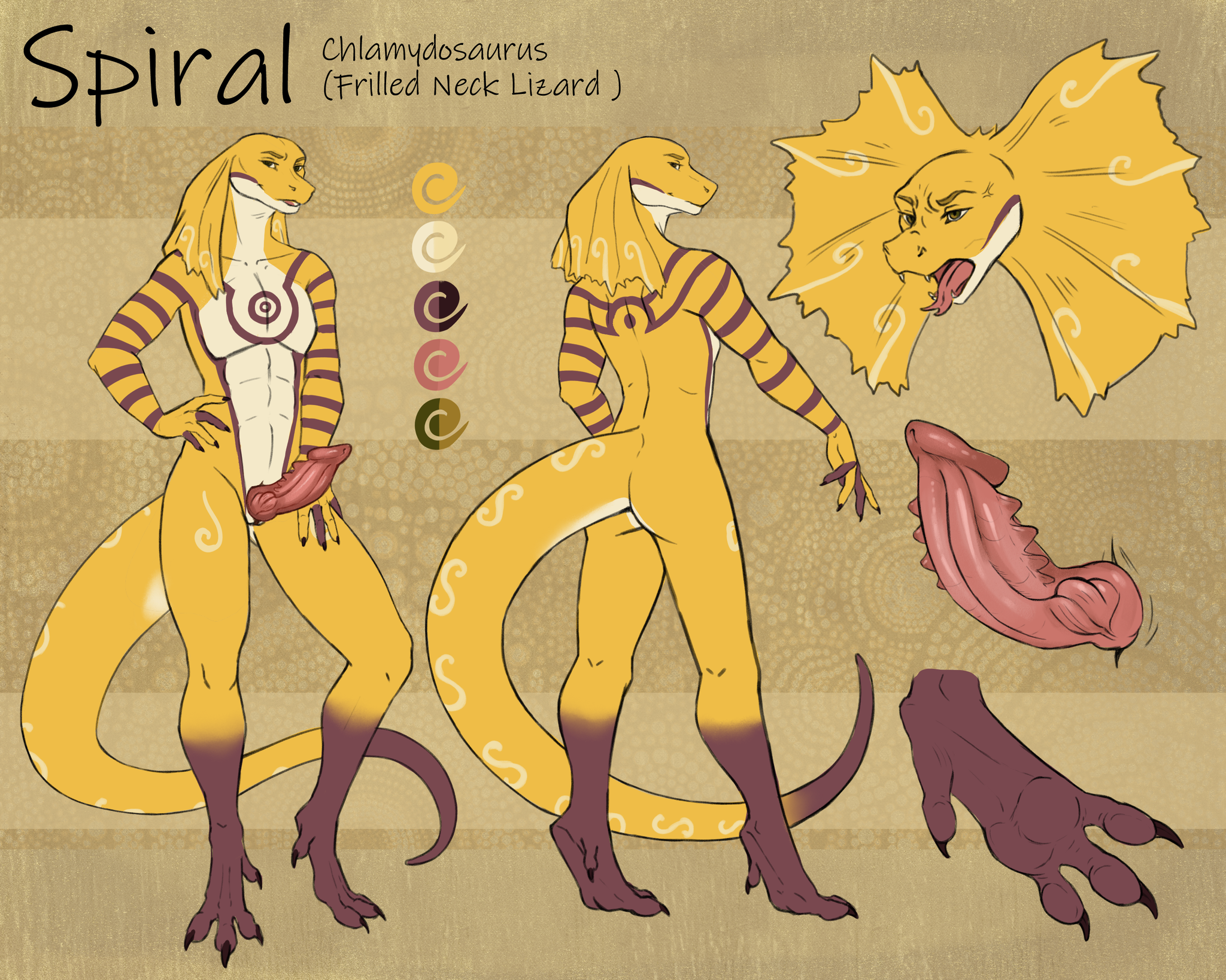 Spiral is a Chlamydosaurus a.k.a. Frilled Neck Lizard. He is often found by himself or with one or two friends. Large groups of people are very draining and he tends to avoid interactions like that if possible. Spiral has been married to his Lovely Otter husband Spencer since 2019.